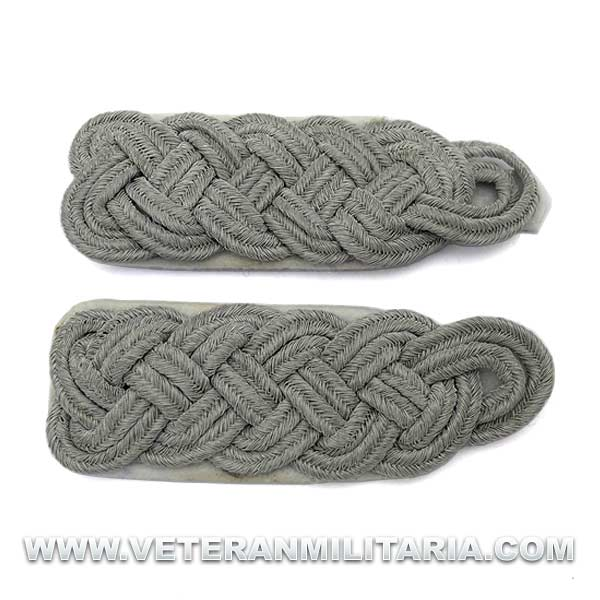 Pareja de hombreras de comandante de la Wehrmacht, fabricadas con hilo metálico, con lengüeta.