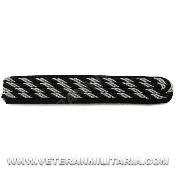 Hombrera Allgemeine SS para tropa y suboficiales, para el rango de SS-Mann S-Mann, Sturmmann, Rottenführer, Unterscharführer, Scharführer, Oberscharführer, Hauptscharführer. Fabricada sobre lana negra con hilo de aluminio.