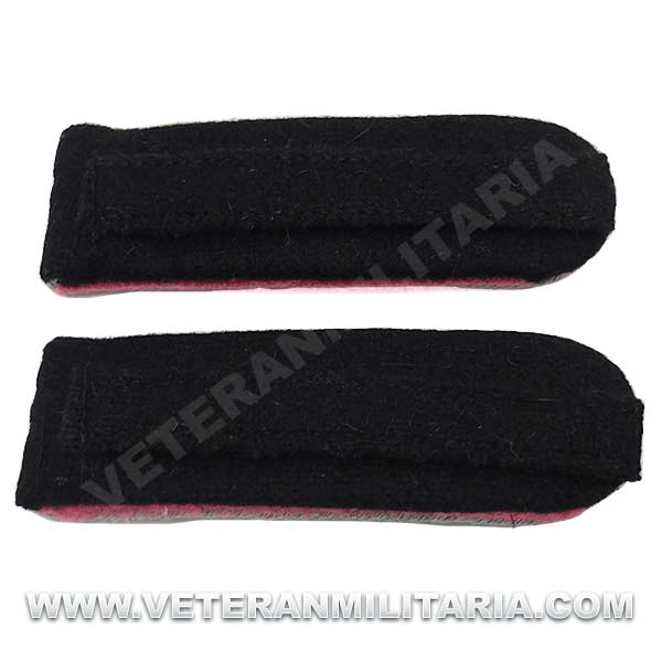 Pareja de hombreras de Panzer SS para oficiales, hilo de aluminio sobre lana negra. Modelo con lengüeta posterior para guerreras con trabilla.