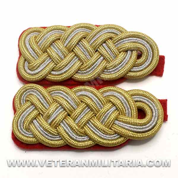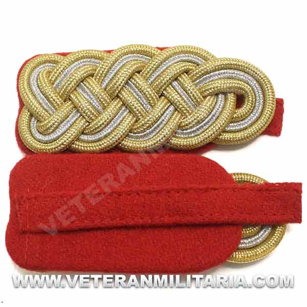 Reproducción de hombreras de general de la Wehrmacht, bordado en hilo dorado en el fondo rojo.