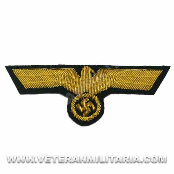 Reproducción de águila de pecho para generales de la Wehrmacht, bordado con hilo dorado en fondo verde oscuro.