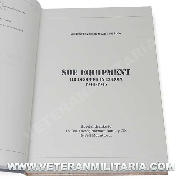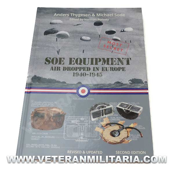 Libro “Equipos de la SOE lanzados desde el aire en Europa entre 1940 y 1945” (SOE Equipment Air Dropped In Europe 1940-1945) segunda edición de Anders Thygesen & Michael Sode, el libro mide 30 x 21,5 cm con 295 páginas, contiene información, fotos en color y blanco y negro, textos, manuales originales, dibujos, etc
