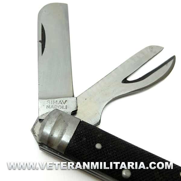 Navaja de ejercito italiano, cachas de baquelita, hoja y abre latas.