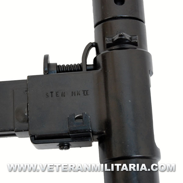Replica fabricada en metal del subfusil STEN MKII, utilizado en la Segunda Guerra Mundial por las tropas británicas. Culata desmontable, incluye cargador decorativo.