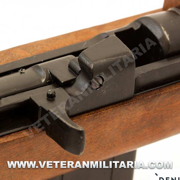 Reproducción a tamaño real de la carabina M1 utilizada por el ejercito de los Estados Unidos de América. Incluye cargador y correa. Simula los movimientos de amartillamiento y disparo, pero no realiza detonación. Fabricado en metal y madera por Denix.