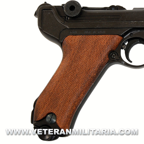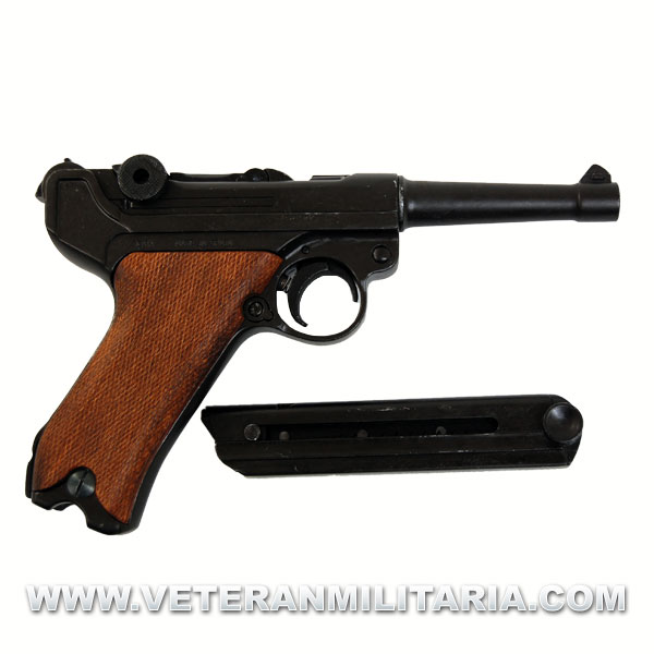 Reproducción a tamaño real de la Luger P08 utilizada por el ejército Alemán. Simula los movimientos de amartillamiento y disparo.