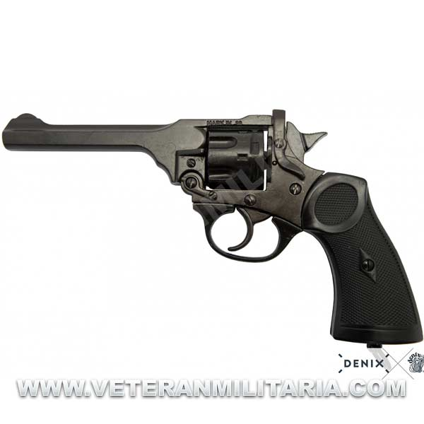 Reproducción del Webley Mk4, fabricada completamente en metal, mecanismo de apertura y disparo. Fue la pistola de servicio estándar de las Fuerzas Armadas del Reino Unido, del Imperio Británico y de los países de la Commonwealth desde 1887 hasta 1963. Fabricada por Denix.