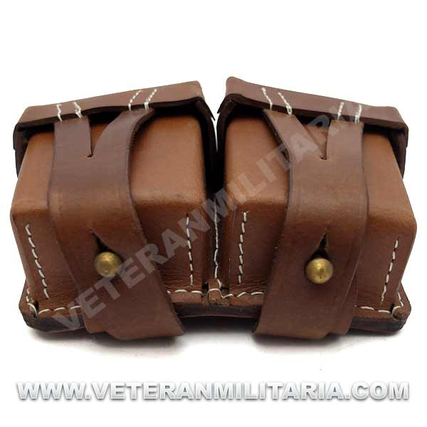 Reproducción de portacargador de Mosin Nagant modelo 1937, fabricada en cuero de color marrón.
