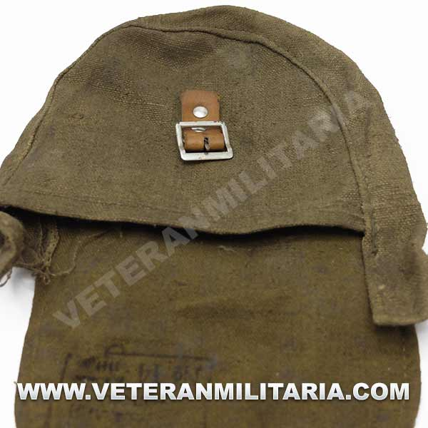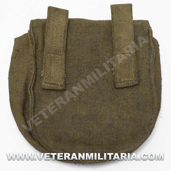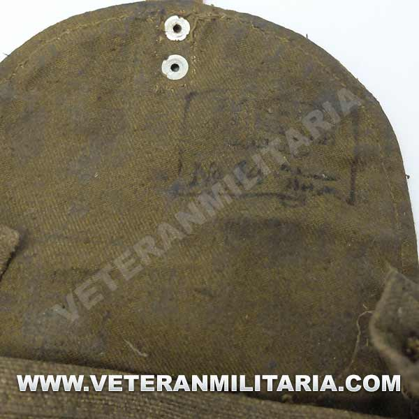 Porta cargador para subfusil soviético PPSH 41, fabricado de gruesa lona, en la parte trasera dos trabillas. En el interior marcajes