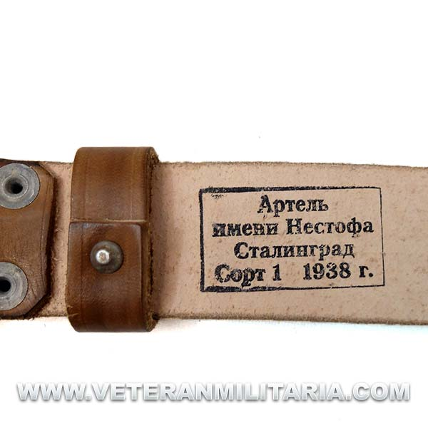 Reproducción de cinturón Ruso de piel modelo 35, remachado. Este tipo de cinturones fueron utilizados por el ejército Soviético en la Segunda Guerra Mundial.