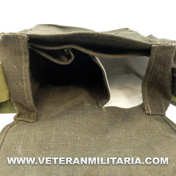 Reproducción de bolsa porta máscara de gas soviética Modelo 1936, fabricada en lona soviética gruesa, todos los bolsillos están hechos de acuerdo como en el original, cierre de piel. Correa de transporte.