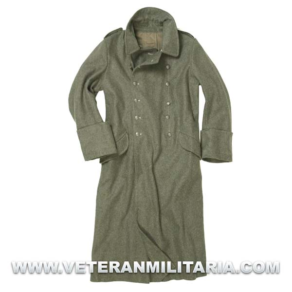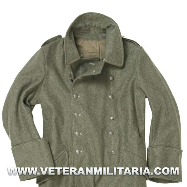 Reproducción del abrigo alemán de campaña, fabricado en lana de color feldgrau, forro de algodón, marcajes del fabricante.