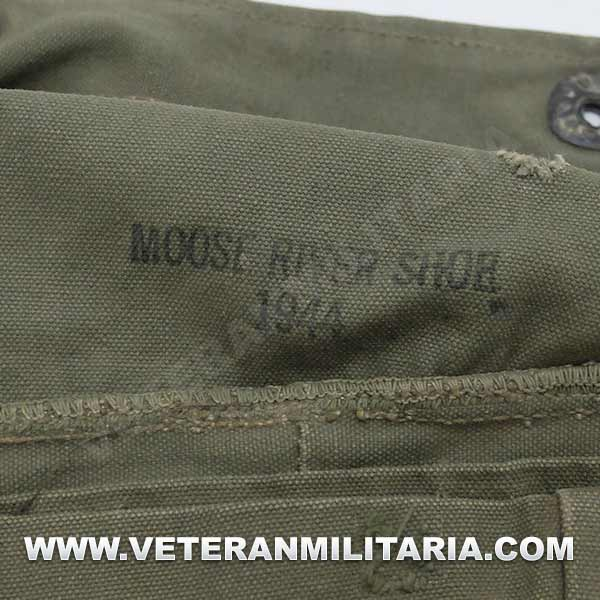 Bolsa de transporte para los proyectiles del bazooka, marcajes de fabricante MOOSE RIVER SHOEL 1944.