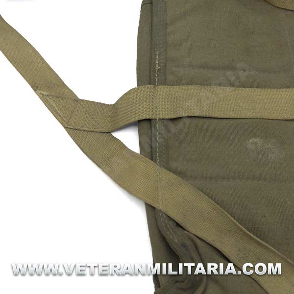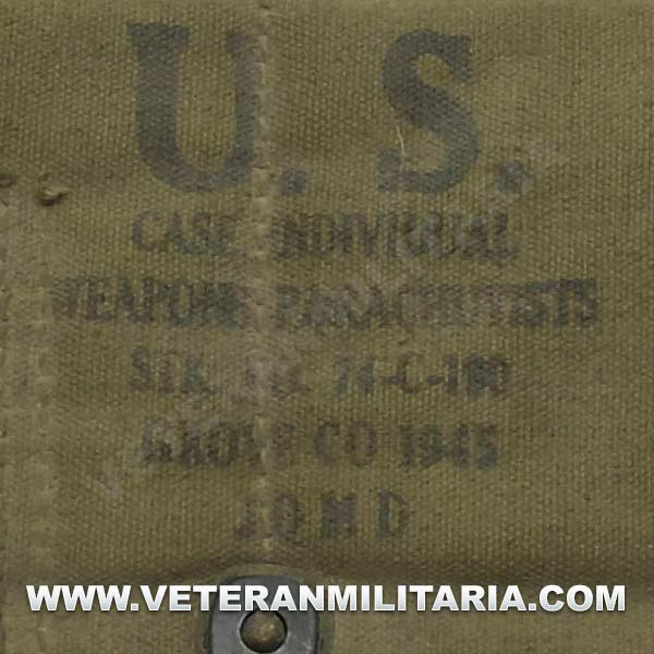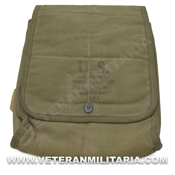 Bolsa de transporte de armas individuales de tropas aerotransportadas, de color OD 7, en la parte delantera marcaje US Case Individual Weapons Parachutist STK. NO. 74-C-190 Grove Co 1945 JQMD, en la parte trasera correas.