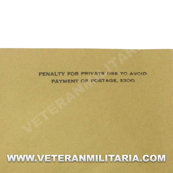 Sobre genuino con sello de goma del Departamento de Guerra del Ejército de los EE. UU. de la Segunda Guerra Mundial, utilizado para enviar mensajes oficiales.