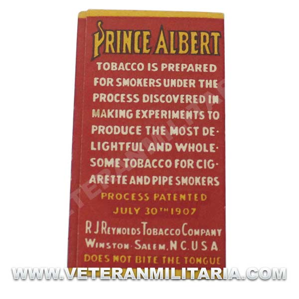 Paquete de papel de fumar Prince Albert US de la Segunda Guerra Mundial.