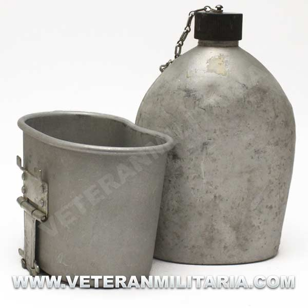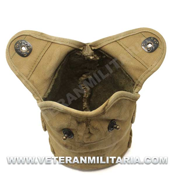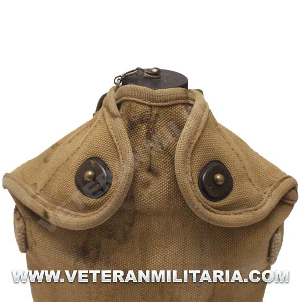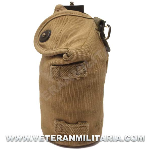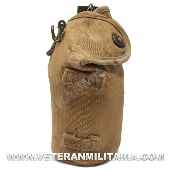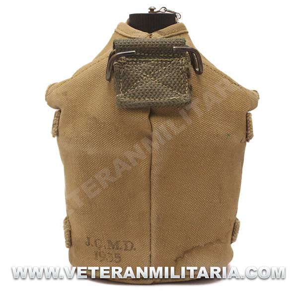 Cantimplora M-1910 US, funda de caballería reconvertida a la funda de infantería, marcajes J.Q.M.D 1935, cantimplora US 1942, cazo US TACU. CO 1941