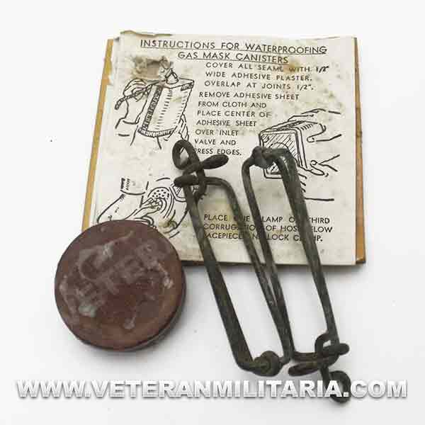 Mascara anti-gas M3 US Army, la máscara tienes marcajes de fabricante y está fechada 1941 está conectada mediante tubo a filtro M10, la bolsa es M1VA1 en perfectas condiciones con marcajes Army Lightweight Service Mask, incluye kit de impermeabilización