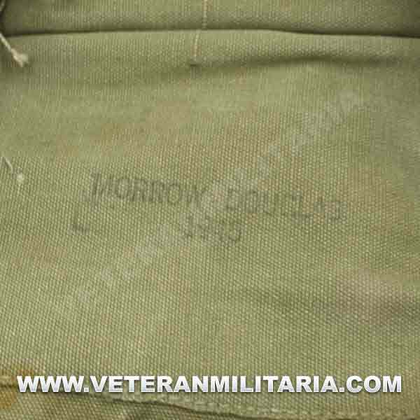 Bolsa de munición M1, fabricada en gruesa lona, en la parte frontal letras US, en el interior marcajes de fabricante “MORROW – DOUGLAS 1945”. La correa de hombro es de posguerra.