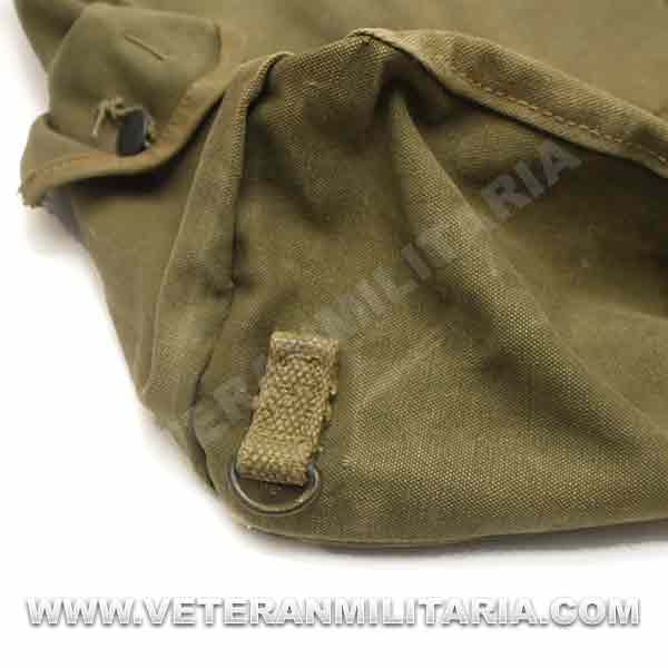 Musette M-1936 Original, marcajes de fabricante LUCE Manufacturing & Co. 1944. En el lado derecho falta un trozo de refuerzo de la solapa y una de las correas esta recosida.