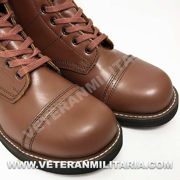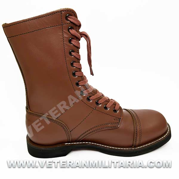 Reproduccion de las botas de Paracaidista, utilizadas en la Segunda Guerra Mundial, fabricadas en piel color marrón, suela de goma negra.