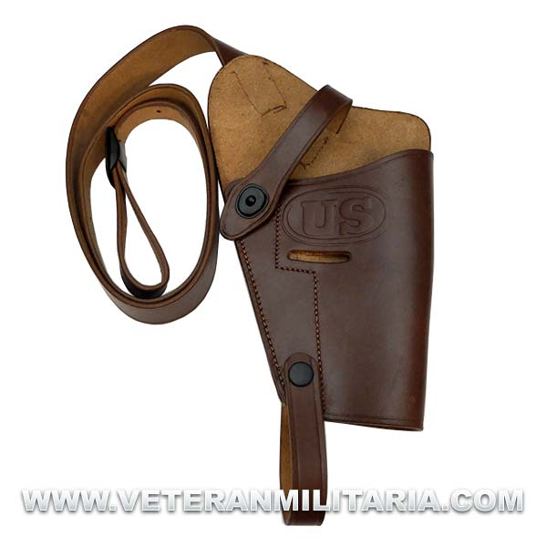 Reproducción de la pistolera M3 estándar utilizada por las tropas Americanas. Modelo al utilizado en la Segunda Guerra Mundial, valida para la Colt 1911A1 y variantes. Fabricada en piel con marcajes.