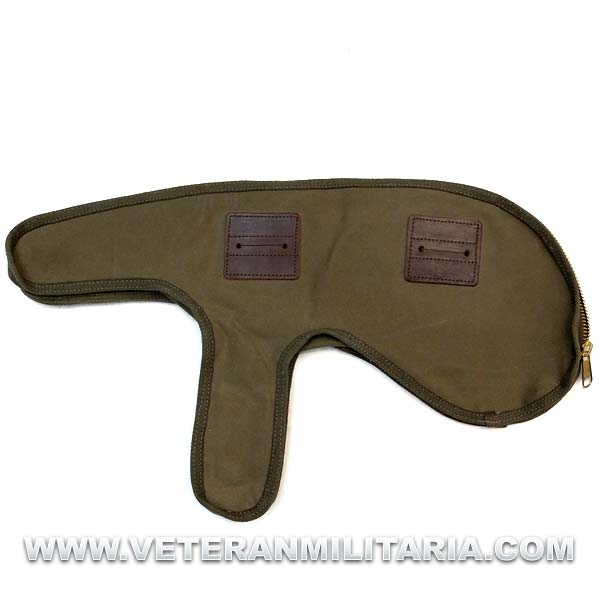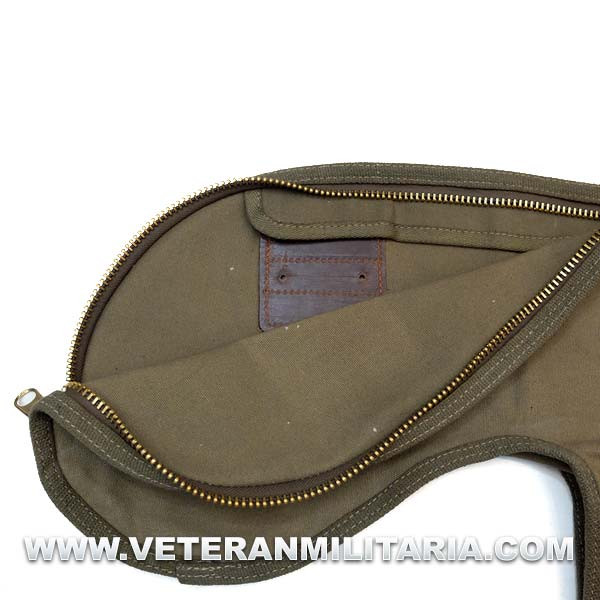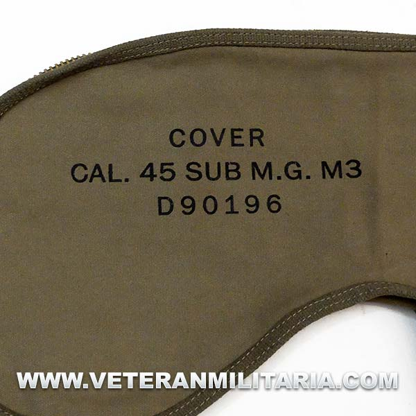 Reproducción de la funda para la M3 Grease Gun, reforzada, cierre con cremallera, orificios para pasar la correa de transporte. Fabricado en loneta color verde olivo. Marcajes “COVER CAL. 45 SUB M.G. M3 D90196”