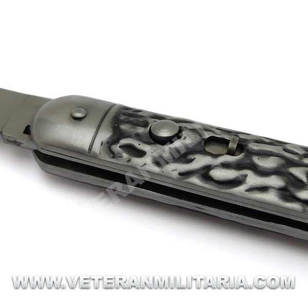 Réplica de la navaja de bolsillo modelo M2 utilizada por las tropas paracaidistas. Fabricada en acero inoxidable. Semiautomática, añade un seguro para evitar su extracción accidentalmente.