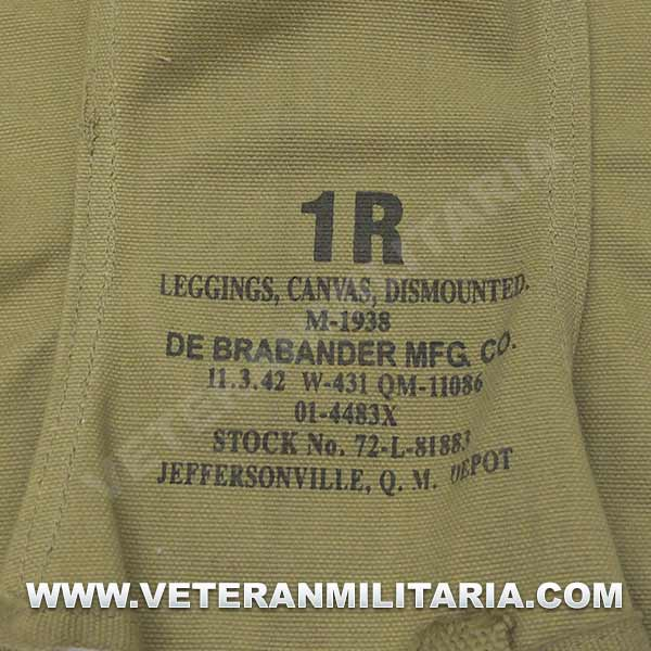 Reproducción de las polainas americanas modelo M1938 R1, fabricadas en loneta color kaki, con los marcajes correspondientes. Se vende la pareja.