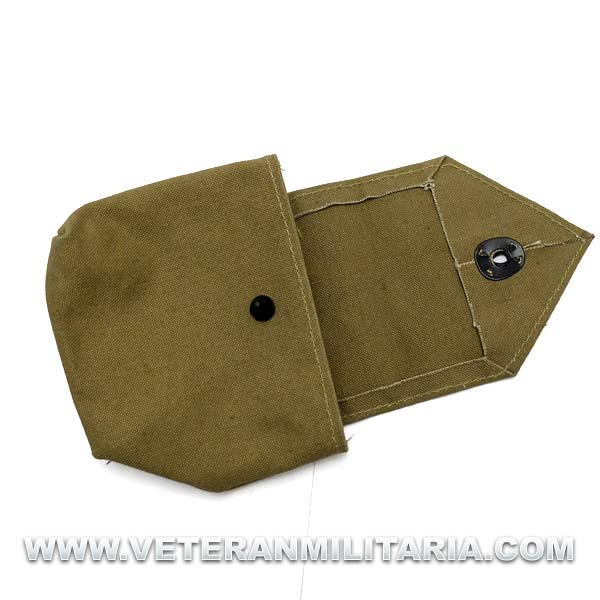 Reproducción de la bolsa de munición, fabricada en lona de color caqui, cierre con clip.