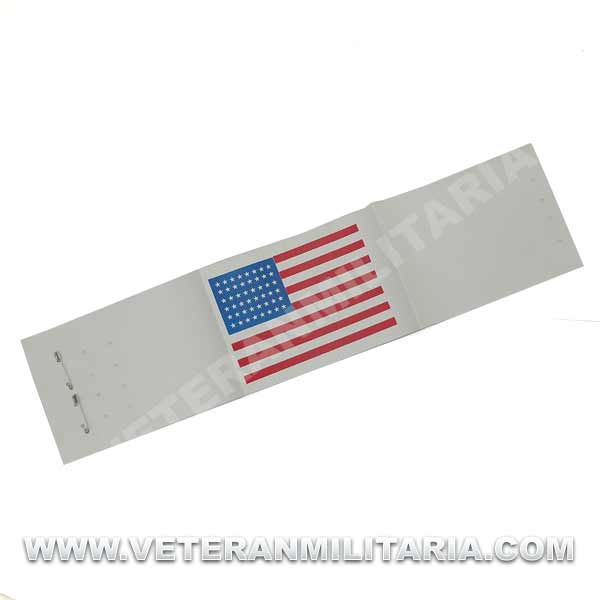 Excelente reproducción de brazalete identificativo de bandera US de 48 estrellas, fabricado en tela de hule, un extremo 12 agujeros en orto 4 agujeros para ajuste en el brazo, incluye 2 imperdibles.