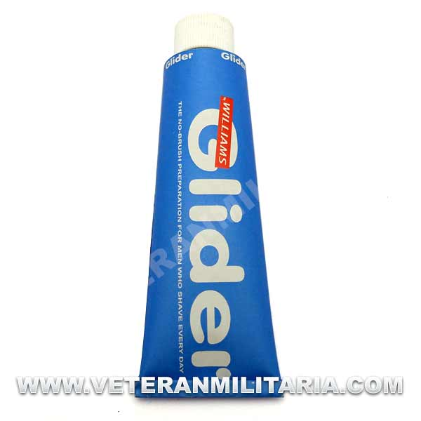 Reproducción de crema de afeitar Glider, tubo de crema con caja de cartón.