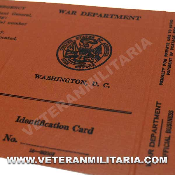 Reproducción de tarjeta de identificación US tropa, esta impresa en papel marrón con textura, en interior papel de color beige.
