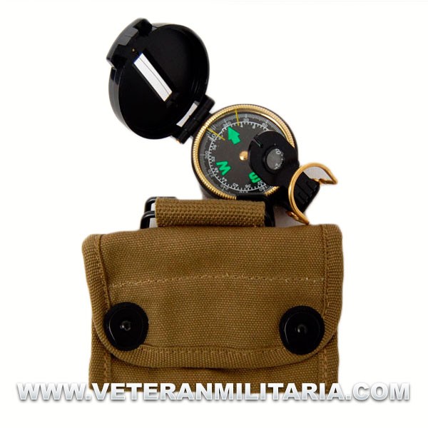 Réplica del primer modelo del compas Lensatic, modelo de los años 40 utilizado en la Segunda Guerra Mundial, fabricado en plástico y metal. Incluye bolsa de transporte fabricada en lona.