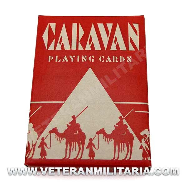 Reproducción de baraja de cartas Caravan, set de 54 cartas, caja de color rojo.