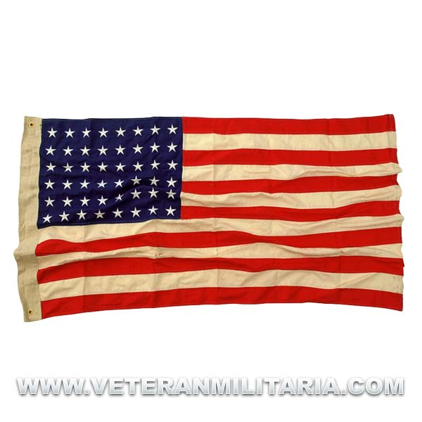 Bandera de los Estados Unidos con 48 Estrellas, utilizada durante 1912 a 1959. Fabricada 100% algodón, las estrellas bordadas. Dimensiones 90x150 cm.