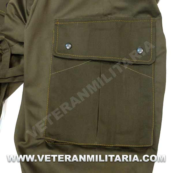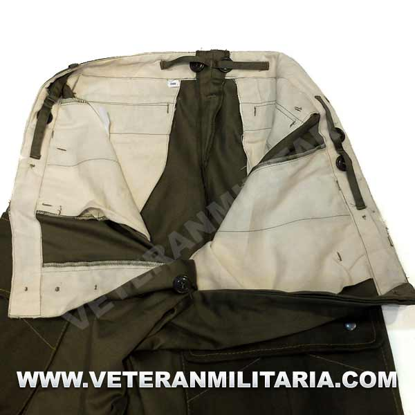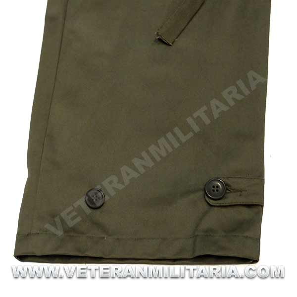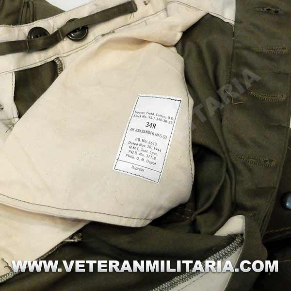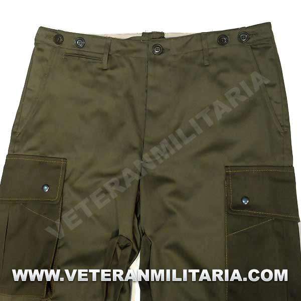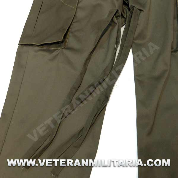 Pantalones modelo 1943 (M43) de paracaidista US con bolsillos laterales de lona, fabricados de algodón de color OD. Tiras de lona incluidas.