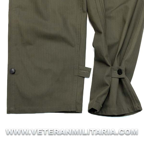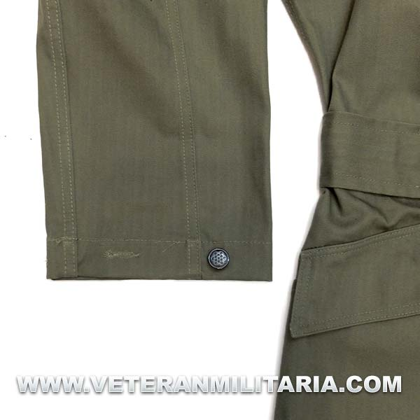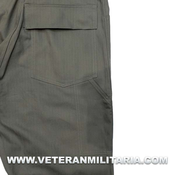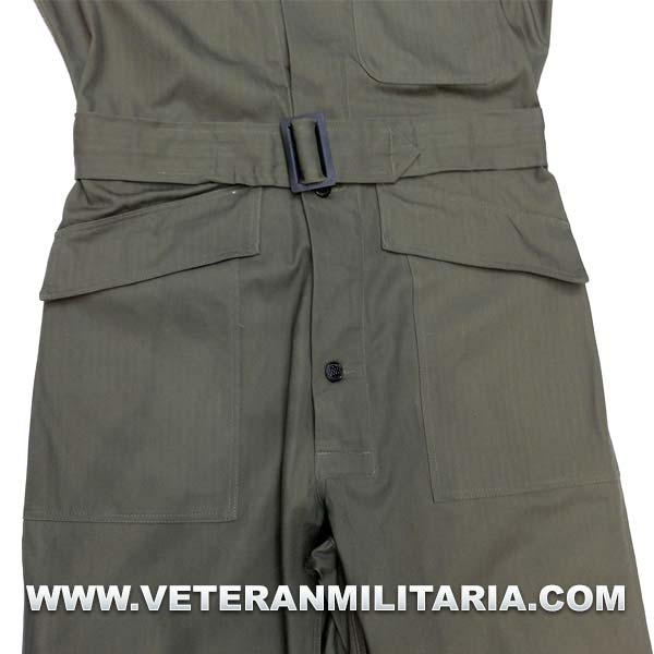 Mono HBT, fabricado en algodón, 5 bolsillos, uno en el pecho, dos frontales en el muslo, uno trasero y bolsillo de herramienta en la pierna derecha, cinturón ajustable, botones metálicos. Botones para ajuste en el tobillo.